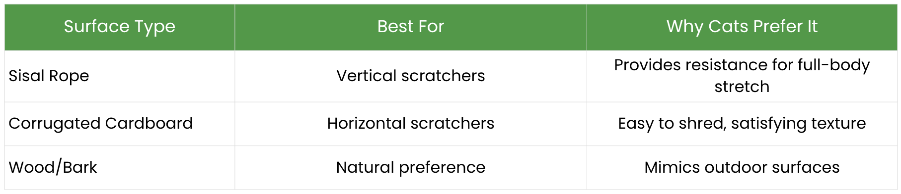Different materials serve different preferences. Observing your cat’s behavior can help guide your choices.