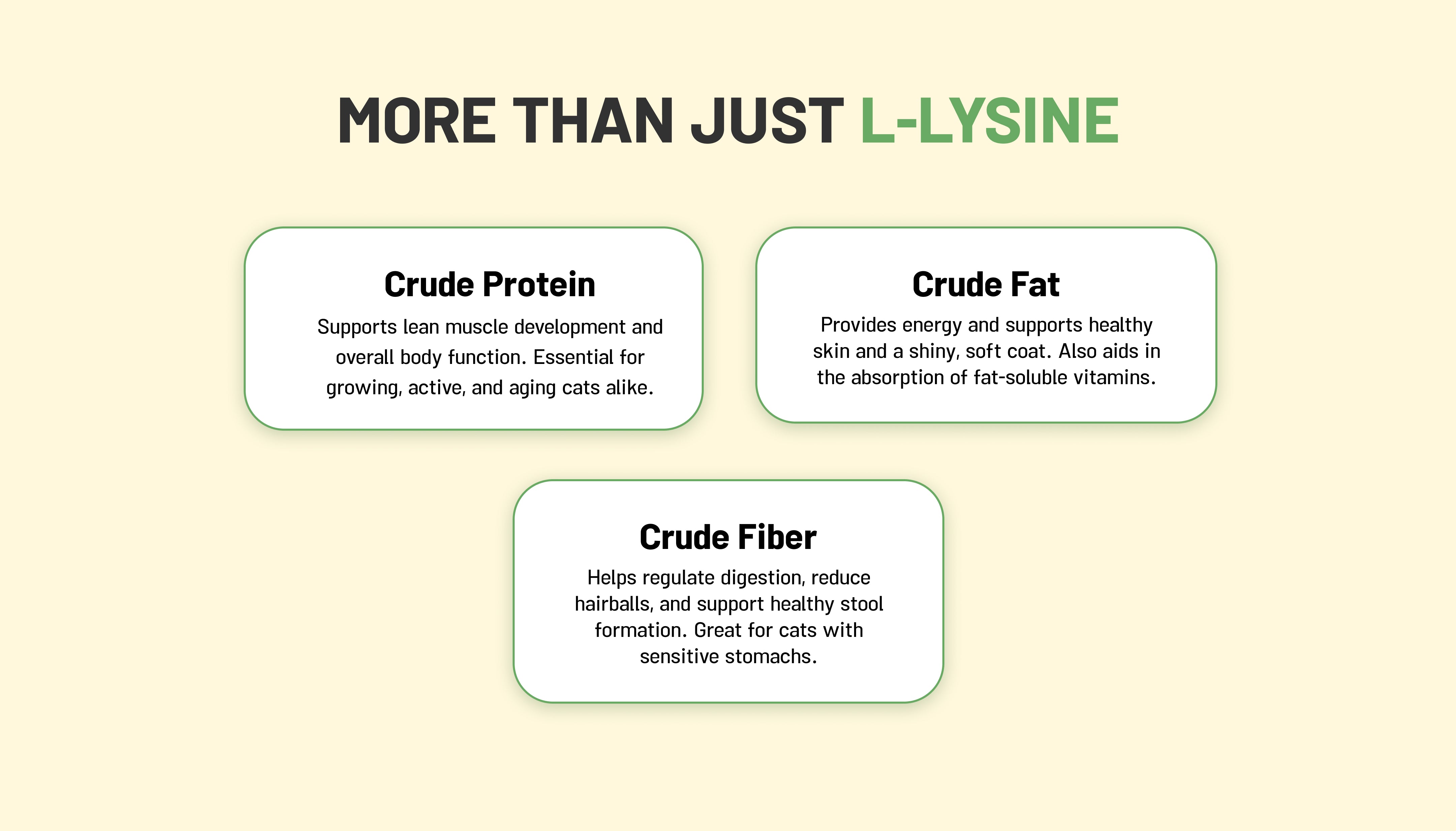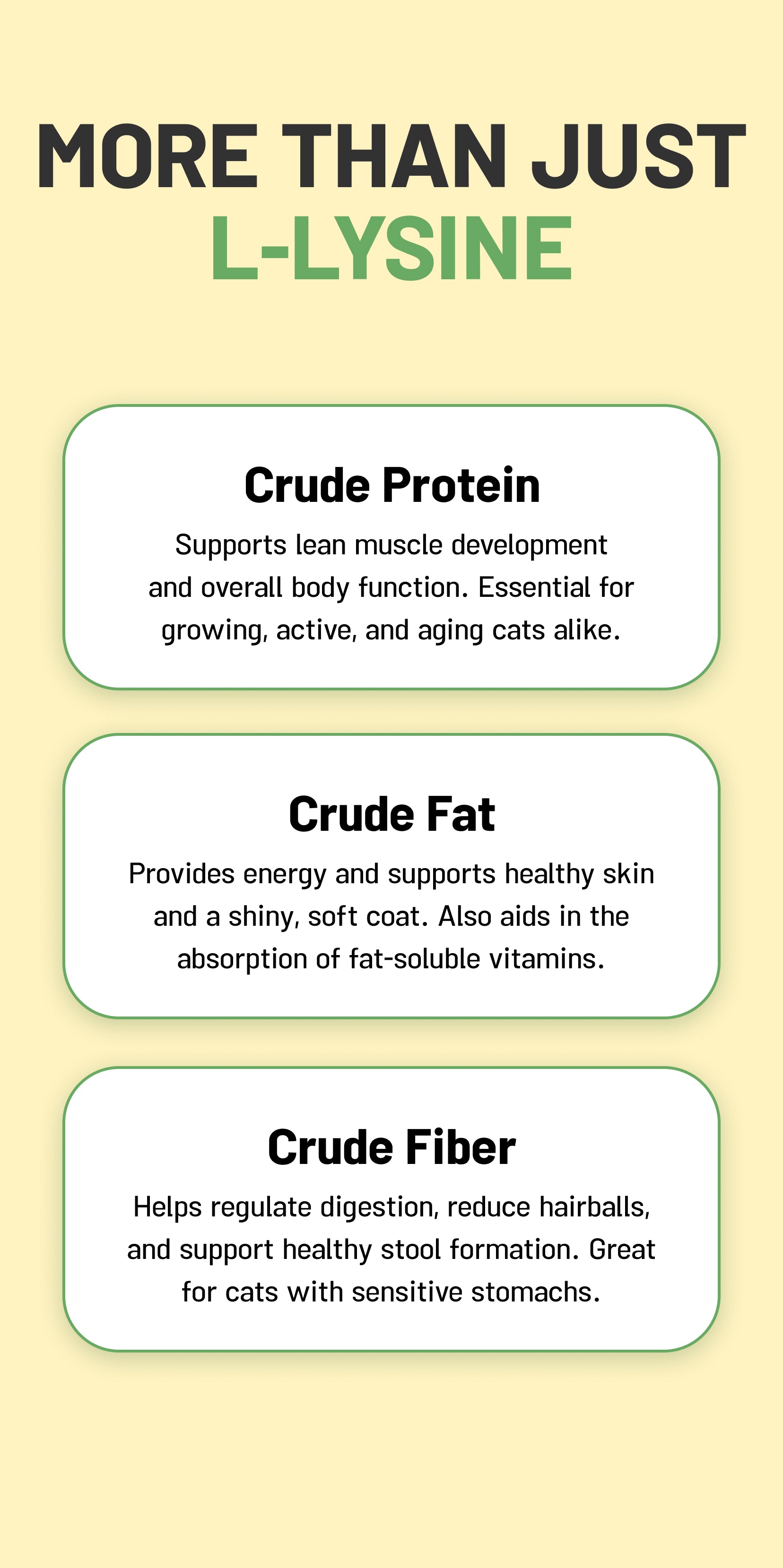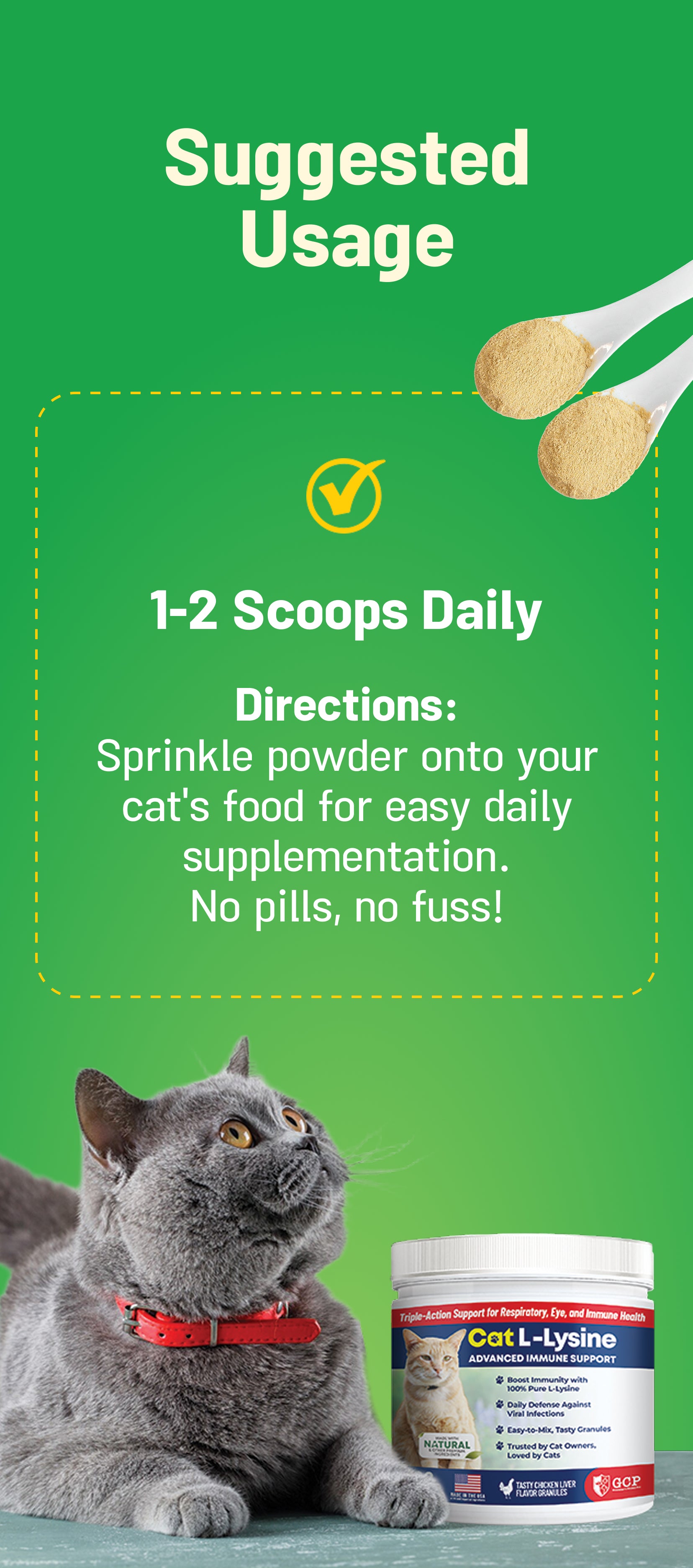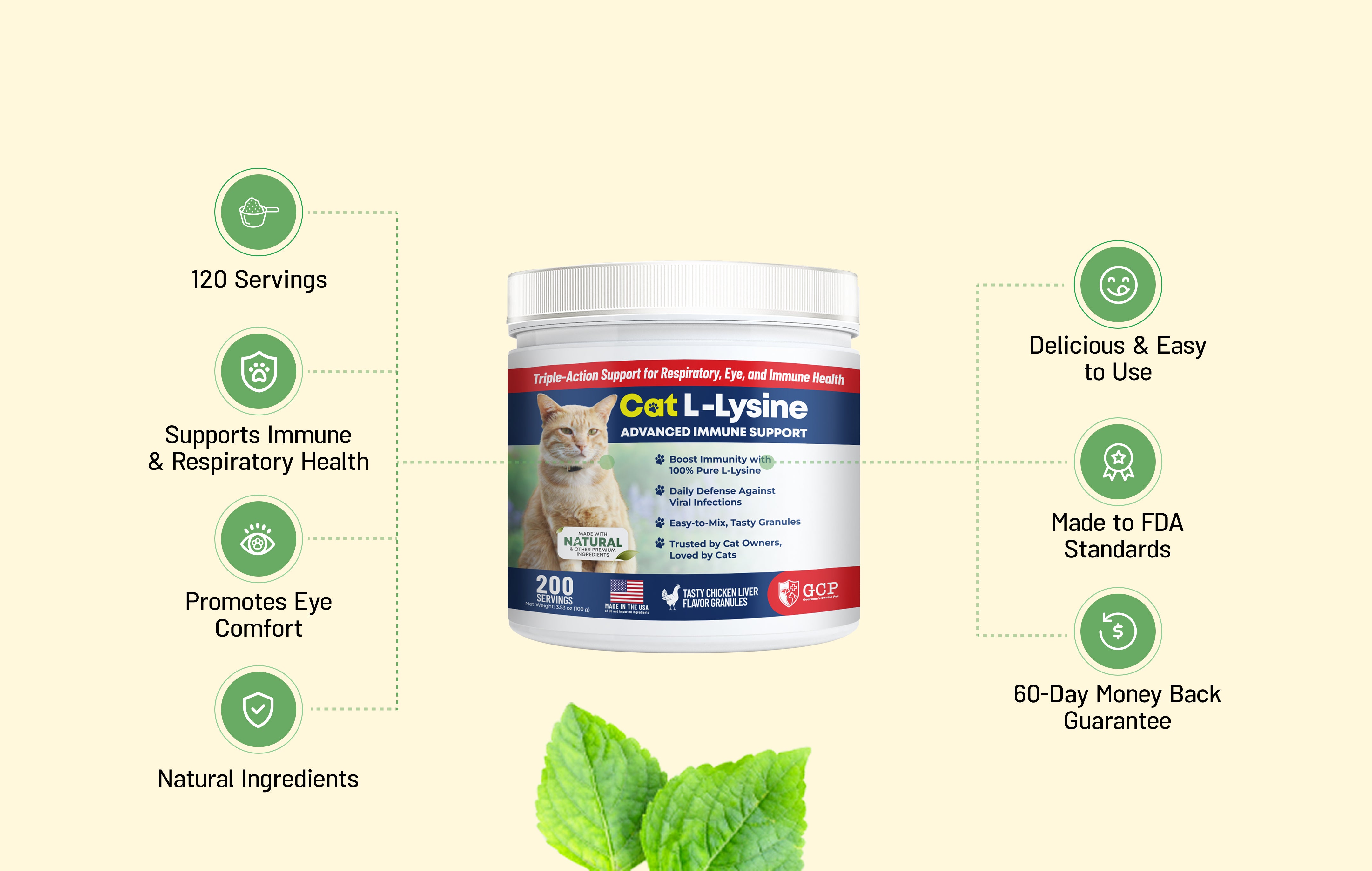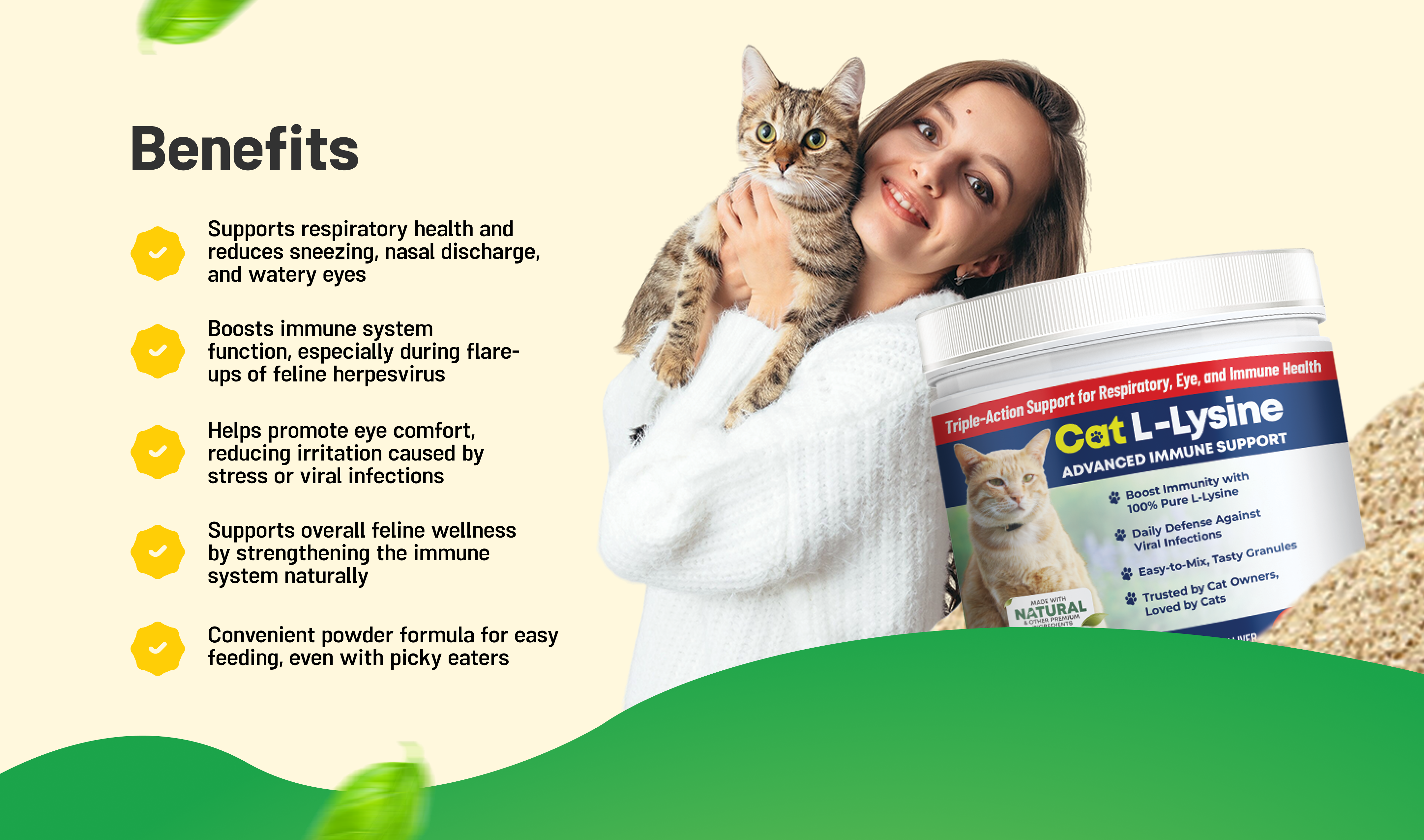 - Reducing flare-ups from feline herpesvirus (sneezing, watery eyes, nasal discharge)